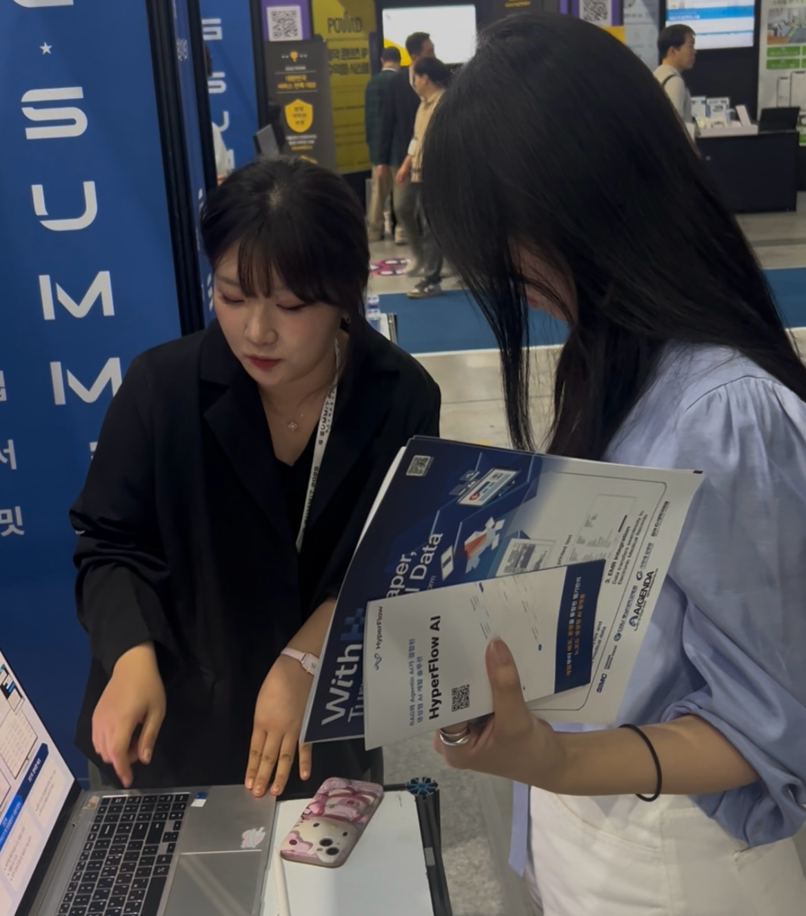 HyperFlow AI는 경기도 대표 스타트업 컨퍼런스 G-Summit 2025에 공식 파트너로 참가해, 2025년 10월 1일부터 10월 2일까지 양일간 단독 부스를 운영하며 하이퍼플로우의 핵심 기술과 실제 제품 경험을 현장에서 직접 선보였습니다. G-Summit은 기술 중심의 전시를 넘어, 실제 산업과 현장에서 적용 가능한 스타트업들의 솔루션이 교류되는 자리입니다. 이번 참가는 생성형 AI에 대한 관심이 단순한 기술 가능성 탐색을 넘어, 'AI를 실제 업무에 어떻게 적용하고, 어떻게 운영할 것인가'라는 보다 현실적인 질문으로 이동하는 시점에서 이루어졌습니다. HyperFlow는 이 질문에 대해, 현장에서 바로 체감할 수 있는 실질적인 해답을 제시했습니다.