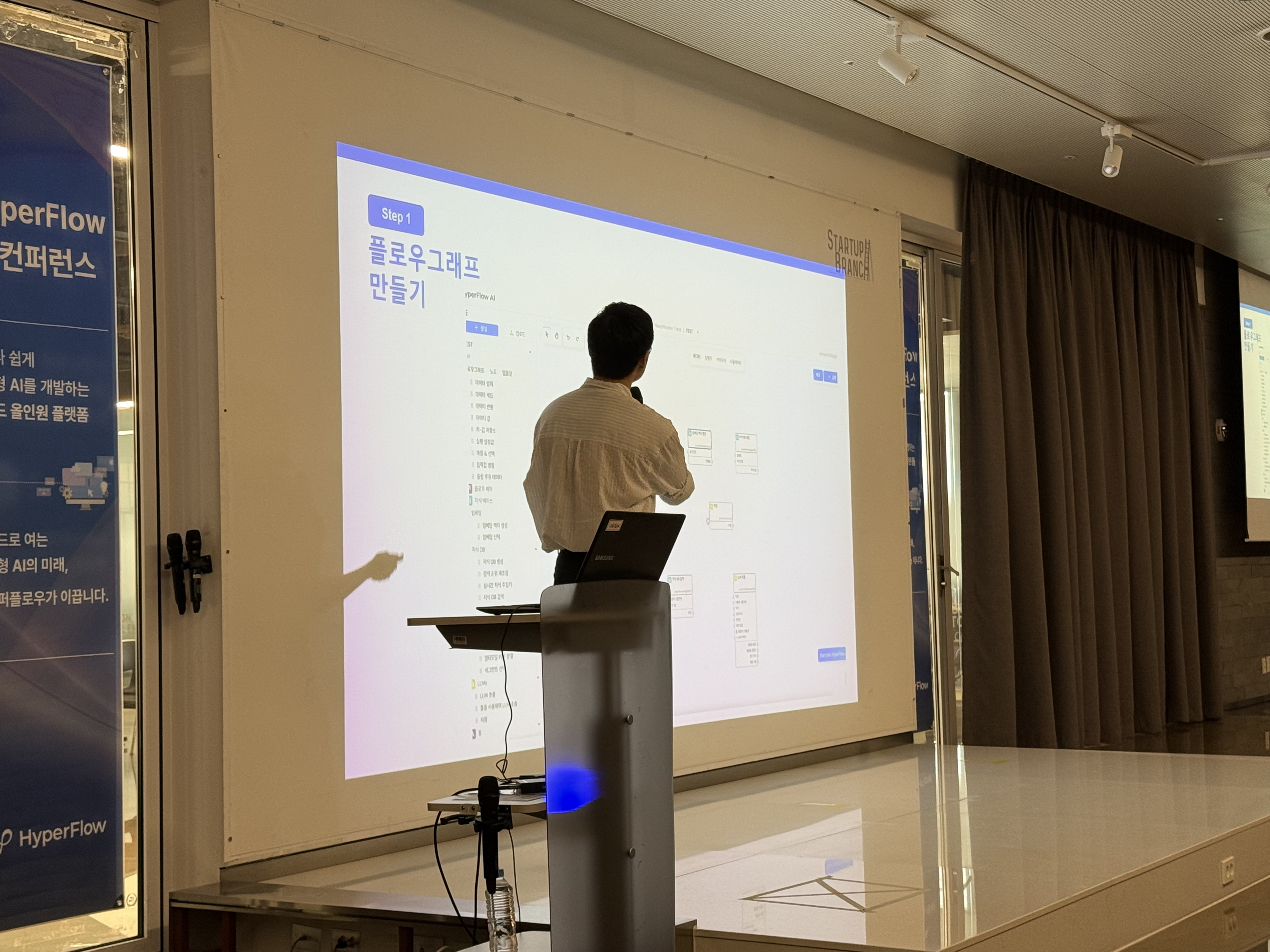 The key element that enhanced the understanding of the event was the Hyperflow live demo demonstration. By designing AI workflows with drag-and-drop methods, and presenting the process of configuring document-based RAG pipelines and agent automation in real-time, Hyperflow's technology was conveyed intuitively. Instead of complex codes or theoretical explanations, it was a moment that clearly demonstrated the practical application of AI automation through a demo session that anyone could understand.